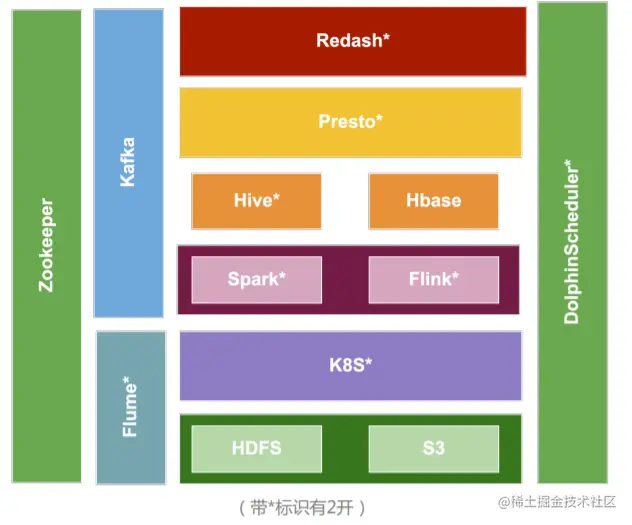 如今我们的数据架构如上图。Apache Dolphin Scheduler承接了整个生命周期从HDFS、S3采集到K8S计算再到基于Spark、Flink的开发。两边的olphinScheduler和Zookeeper都是作为基础性的架构。我们的调度信息如下:Master x2、Worker x6、API x1(承载接口等),目前日均工作流实例:3.5k,日均任务实例15k+。(下图为1.2.0版本架构图)