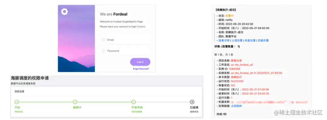 下方三张图就是对应分别是登录系统、工单权限和企业微信的告警。