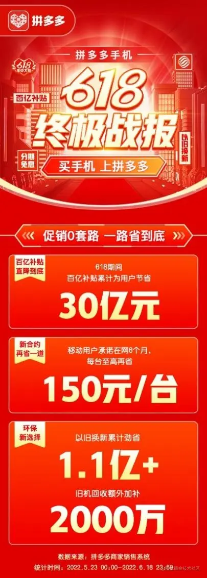 今年618期间,拼多多百亿补贴秉承“直降到底”的原则,继续加大了对手机类目的补贴力度和覆盖范围,并联合品牌方、运营商通过多重让利的方式,持续给消费者带来“真香”体验。据拼多多618大促的项目负责人介绍,今年618平台对手机产品的补贴力度远超往年,已累计为用户节省30亿元。