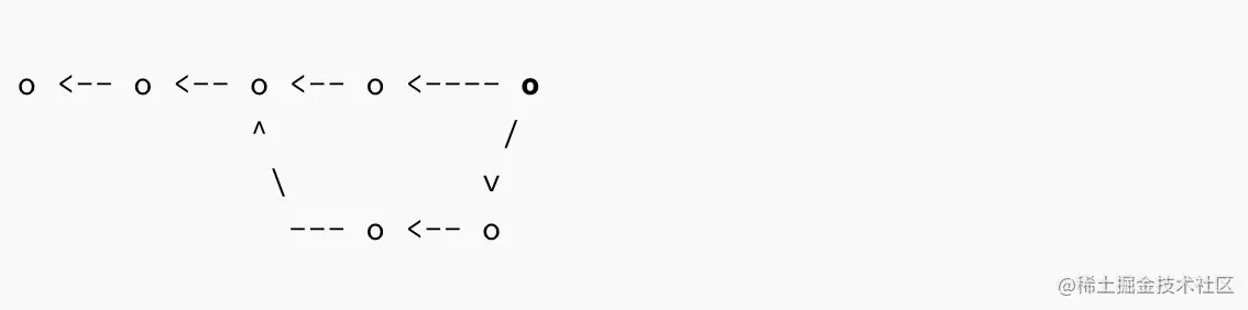 在git当中,历史变更是一个快照构成的DAG(有向无环图)。这看起来似乎很高大上,但不用害怕只是一个很简单的概念。这表明了git当中的每一个快照可能有多个父节点。注意,快照有多个父节点而非一个,因为某一个快照可能是由多个父节点生成的,比如由于合并了两个并行开发的分支而创建的节点,就会有多个父节点。