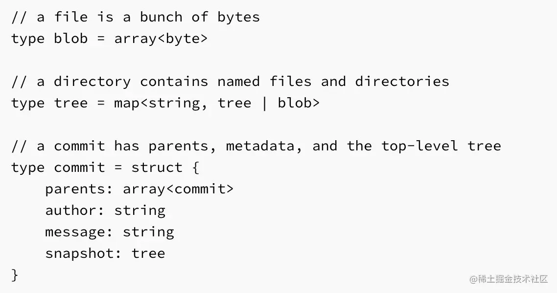 可能用伪代码的形式表示git中的数据模型更加清晰: