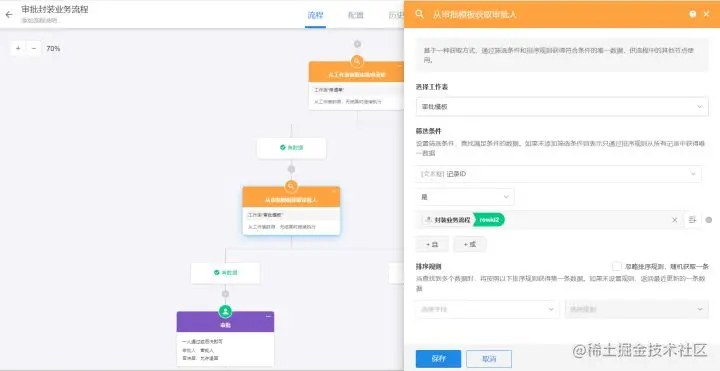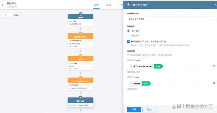 这样一来,后面的主流程会从审批模板中,按顺序传入每个审批对应的审批人和节点名称。因为本例中构建了审批模板,所以只需传入审批模板记录id供封装业务流程匹配即可达到同样的效果。