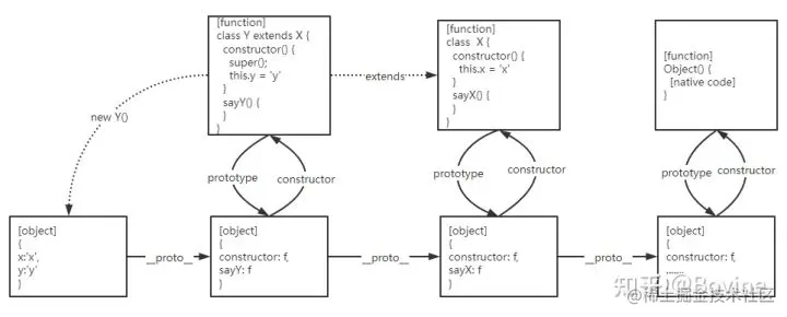 y.sayY() // 通过y.__proto__指向的Y.prototype对象中找到