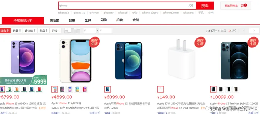 - 在电商网站搜索商品