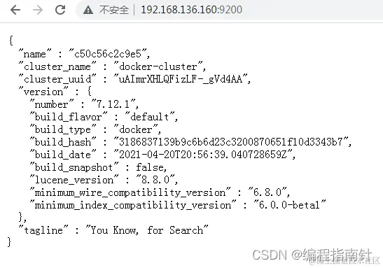 在浏览器中输入: http://192.168.136.160:9200 即可看到elasticsearch的响应结果: