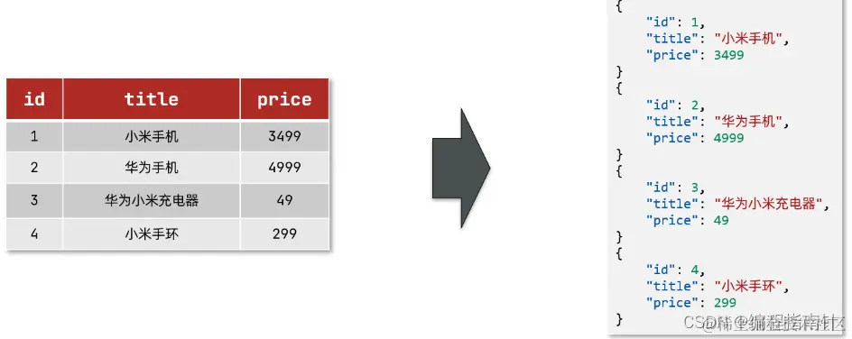 而Json文档中往往包含很多的字段(Field) ,类似于数据库中的列。