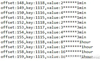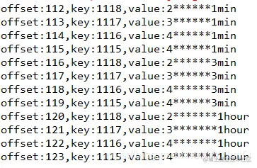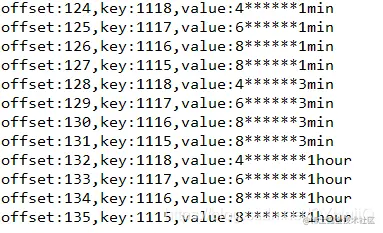 * 如果使用这样的方法,得到的输出结果就是:offset:0,key:[0001@1550313600000/1550314200000],value:110min