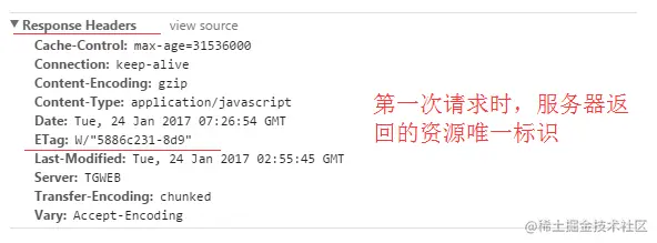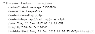 图中Cache-Control仅指定了max-age,所以默认为private,缓存时间为31536000秒(365天)