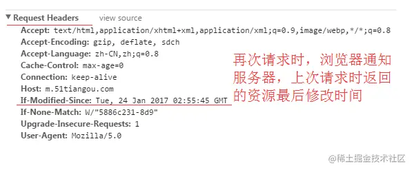 若资源的最后修改时间小于或等于If-Modified-Since,说明资源无新修改,则响应HTTP 304,告知浏览器继续使用所保存的cache。