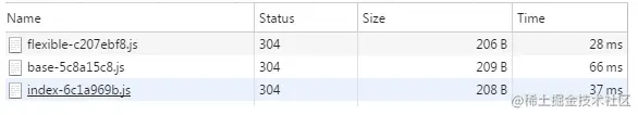 通过两图的对比,我们可以很清楚的发现,在对比缓存生效时,状态码为304,并且报文大小和请求时间大大减少。 原因是,服务端在进行标识比较后,只返回header部分,通过状态码通知客户端使用缓存,不再需要将报文主体部分返回给客户端。