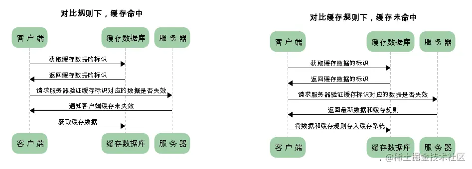 对缓存机制不太了解的同学可能会问,基于对比缓存的流程下,不管是否使用缓存,都需要向服务器发送请求,那么还用缓存干什么? 这个问题,我们暂且放下,后文在详细介绍每种缓存规则的时候,会带给大家答案。