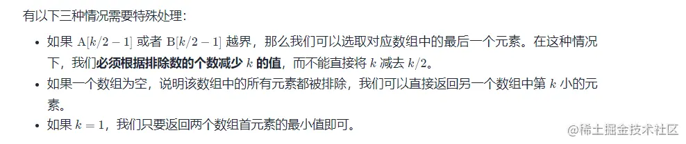 * 取 pivot = min(pivot1, pivot2),两个数组中小于等于 pivot 的元素共计不会超过 (k/2-1) + (k/2-1) <= k-2 个