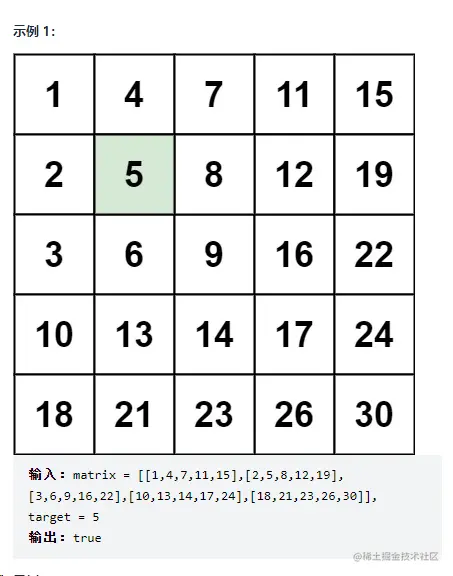 编写一个高效的算法来搜索 m x n 矩阵 matrix 中的一个目标值 target 。该矩阵具有以下特性: