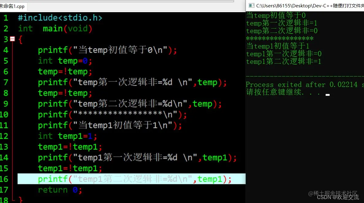printf("temp1第二次逻辑非=%d\n",temp1);