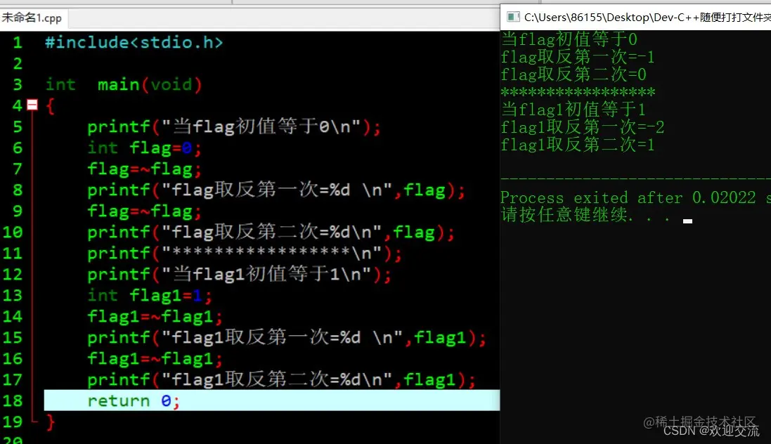 通过代码来理解逻辑运算非“!”和取反符号“~”的不同之处。