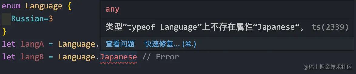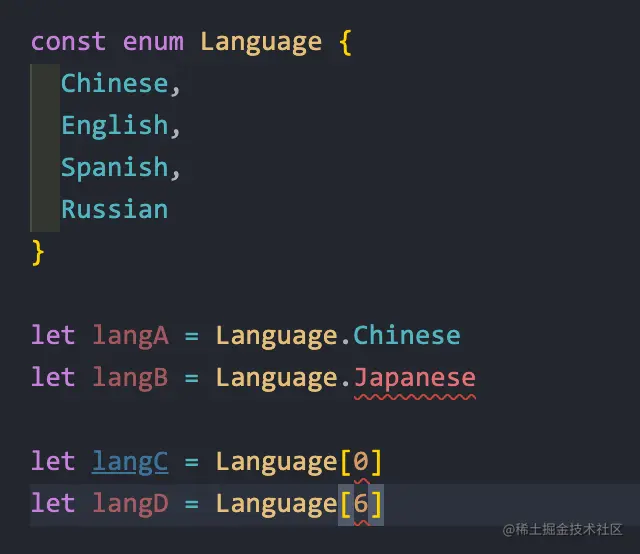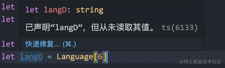 let langD = Language[6] // 实际上Language[6]不存在,但是ts居然不报错