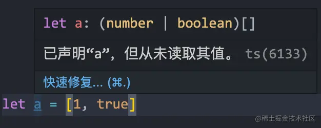 let a = [1, true] // 没有显示注解声明,猜一下ts会自动推导出来什么?