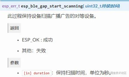 esp_ble_gap_start_scanning(duration);