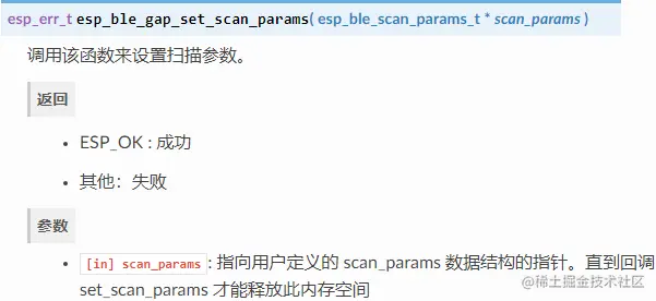 esp_ble_gap_set_scan_params() 使用 esp_ble_scan_params_t 结构体进行设置