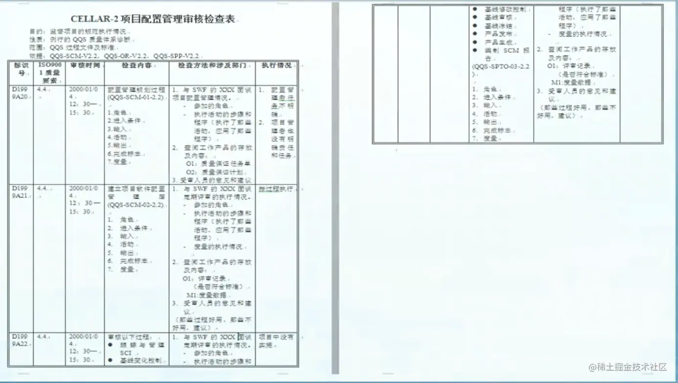 例子:这是针对某项目配置管理过程的过程审计,首先要明确配置管理的质量标准,过程审计按照这个标准来检查项目是否按照标准进行配置管理,最后给出针对这个过程的审计结论。