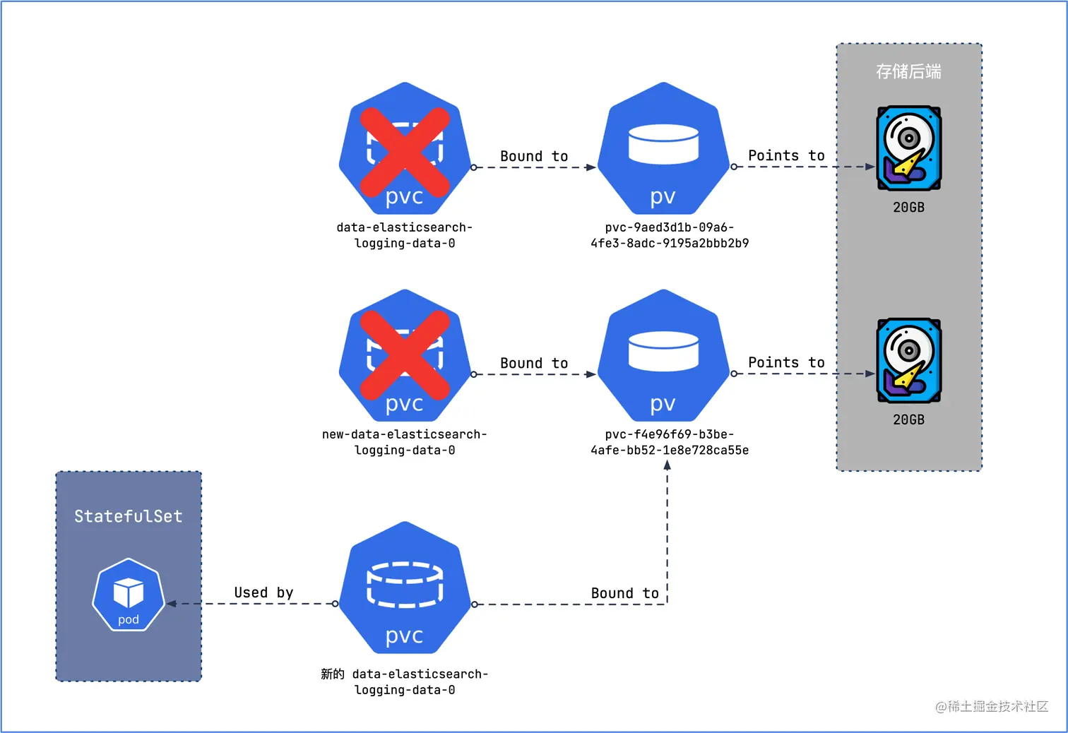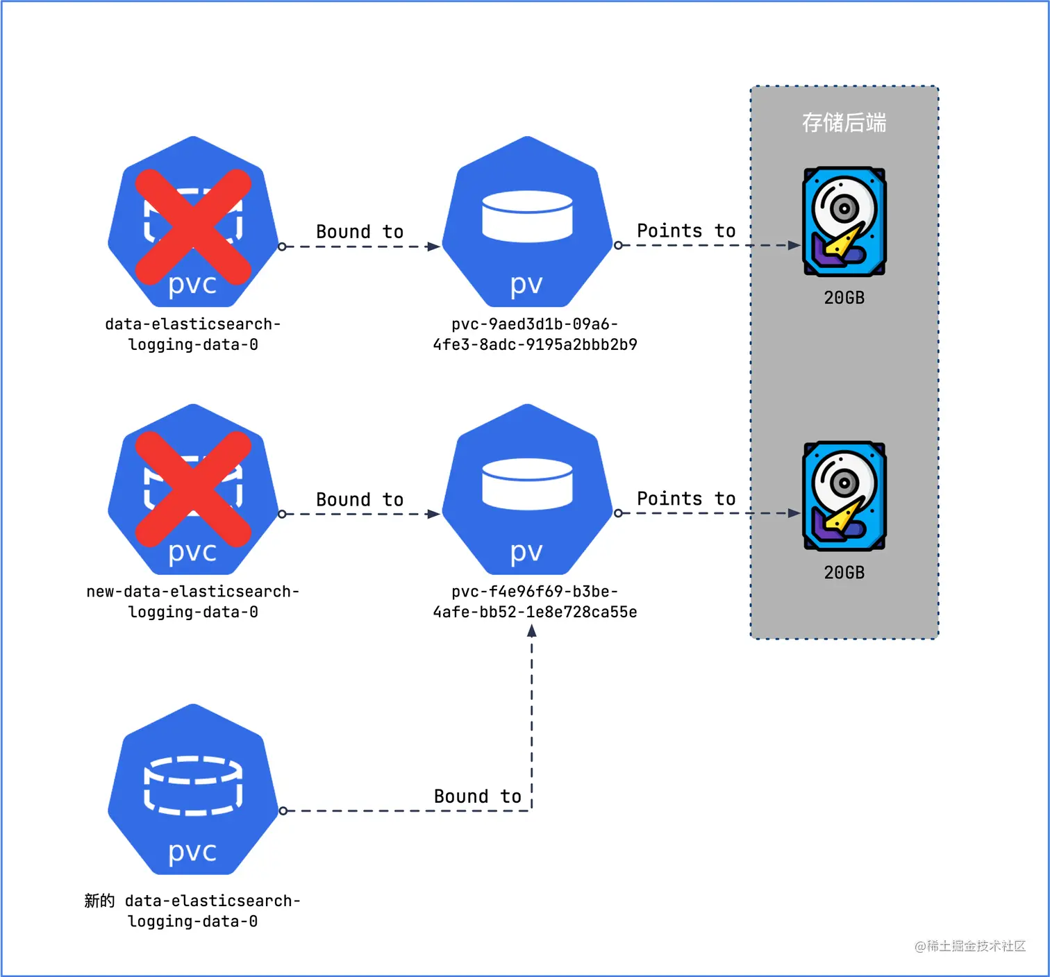 spec.volumeName指向新 PV;- 新 PVC 的