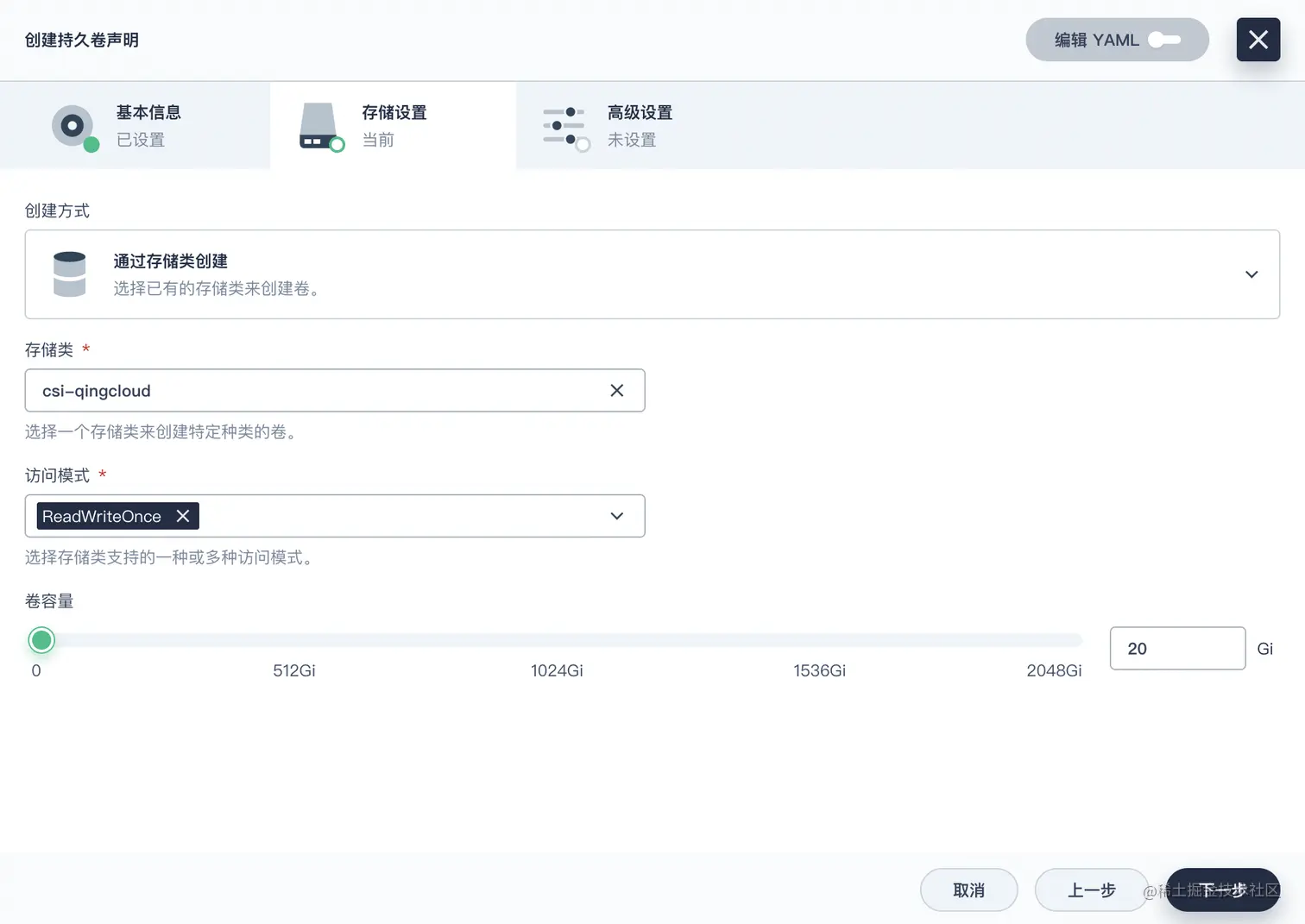 storageClassName: csi-qingcloud