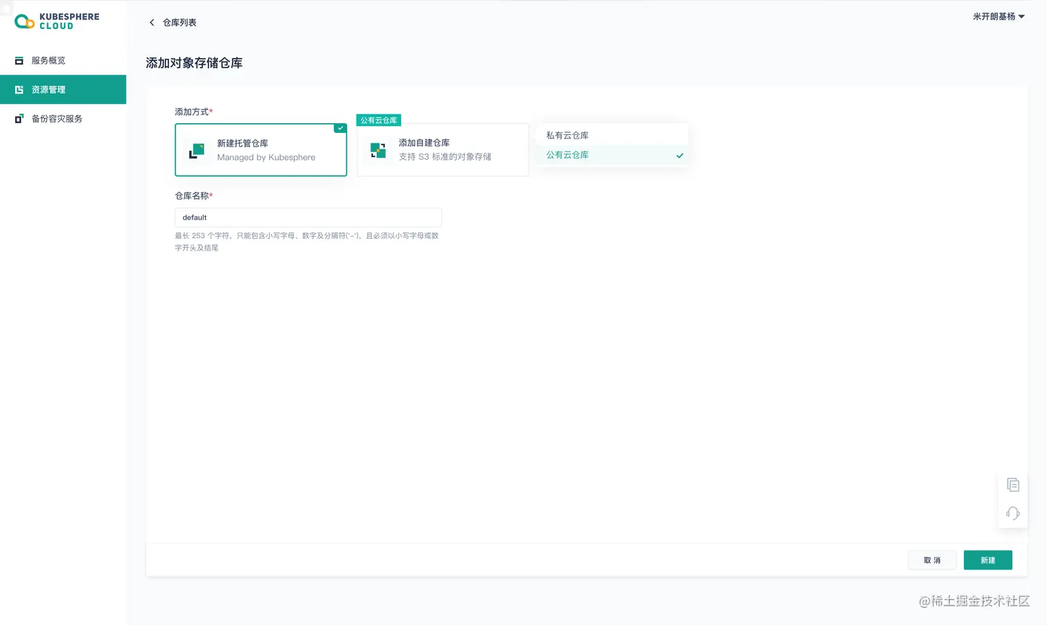 然后新建托管仓库。