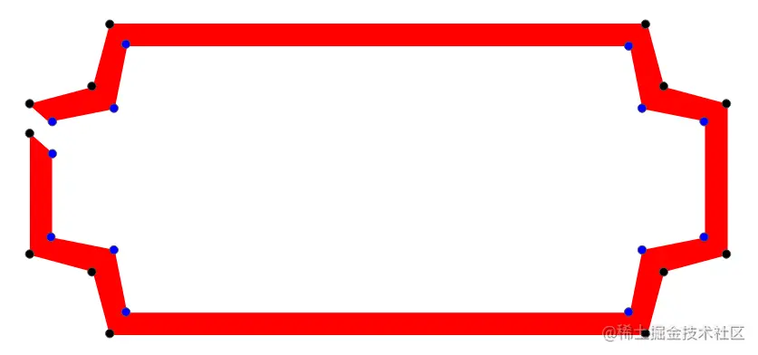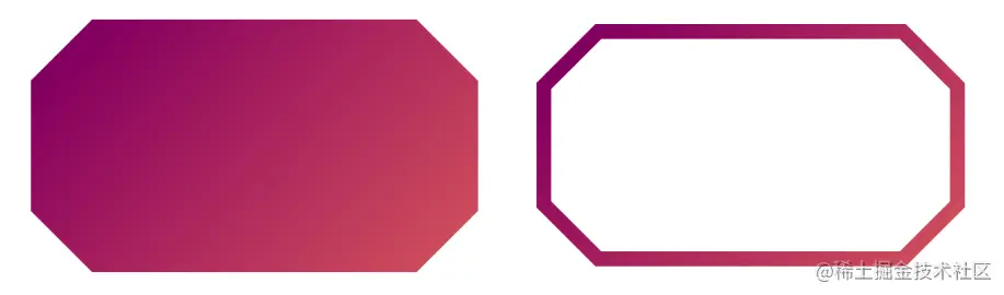 我们在角上有一条直线,所以我们可以优化clip-path 代码。对于完整的形状,我们可以使用8个点(每个角两个点)而不是12个。而对于仅有边界的版本,我们可以使用18个点(9个内点和外点),而不是26个。换句话说,我们可以删除中间的点。