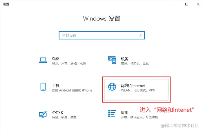 第2步:进入“设置”后,在里面找到并进入“网络和Intenet”;