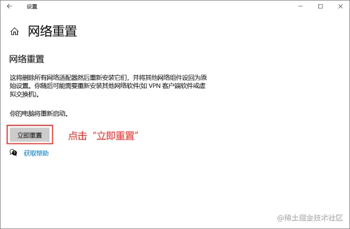注:最后需要重启一下电脑才能使网络重置完成哦!