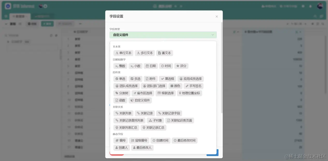 除了模板原本的字段外,企业或员工还可以根据实际需要将字段增减改,目前平台支持38种字段类型,还可根据脚本的形式自定义,满足企业不同人员的不同使用场景。