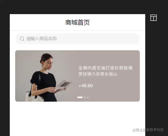 接下来需要一个搜索框钮来搜索商品,找到搜索组件,拖入到画布中,之后再找一个轮播图组件放到搜索框的下面
