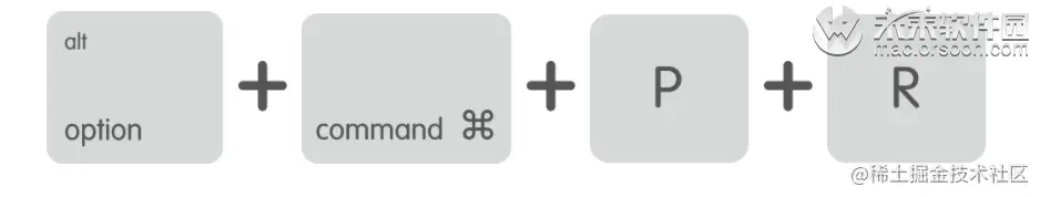 1、将 Mac 关机,然后开机并立即同时按住以下四个按键:Option、Command、P 和 R。您可以在大约 20 秒后松开这些按键,在此期间您的 Mac 可能看似在重新启动。
