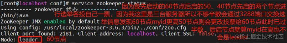 ●D是万一集群中的Leader服务器挂了,需要一个端口来重新进行选举,选出一个新的Leader,而这个端口就是用来执行选举时服务器相互通信的端口。