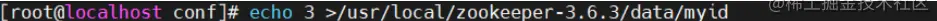 echo 3 > /usr/local/zookeeper-3.6.3/data/myid