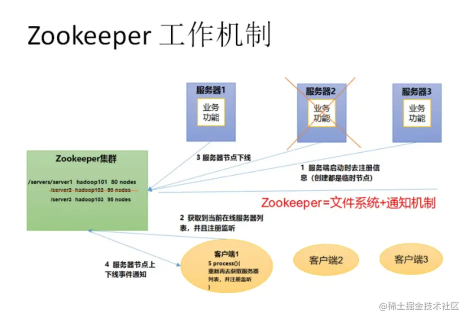 客户端能实时洞察到服务器上下线的变化。