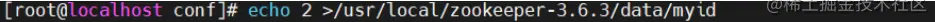 echo 2 > /usr/local/zookeeper-3.6.3/data/myid