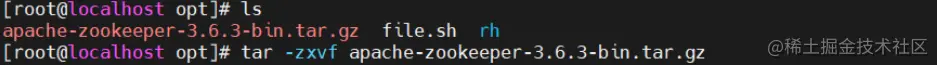 tar -zxvf apache-zookeeper-3.6.3-bin.tar.gz