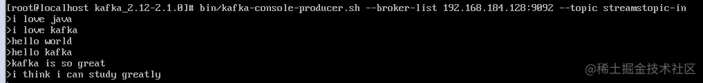 3.2.2在streamstopic-in中生产几条消息: