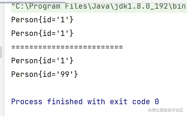 clone()方法克隆了一个和person1相同的对象地址为0x2222,然后将这个地址给到person2,因此person2指向了这个新的对象了,然后改变person2所指向的这个对象中id这个变量的值,并不影响person1所指向对象中id的值。结论: 因为它们之间是互不影响的,所以这是一个*深拷贝*。