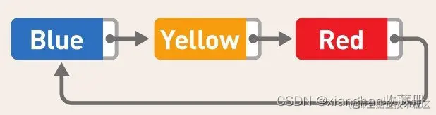 如果想要添加数据,只需要改变添加位置前后的指针指向就可以,非常简单。比如,在Blue和Yellow之间添加Green。