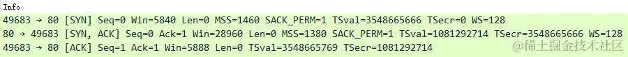 实际数据包分析,TCP 三次握手主要如下