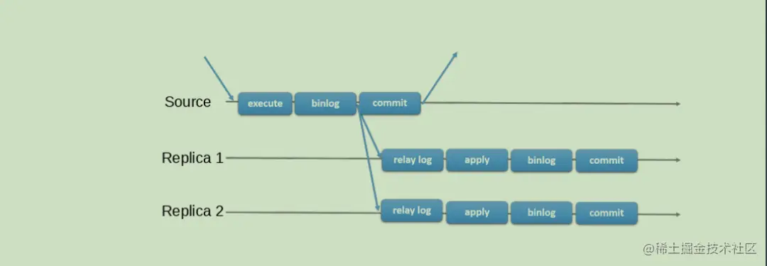 - 从库读取中继日志信息在从库进行Replay,更新从库信息