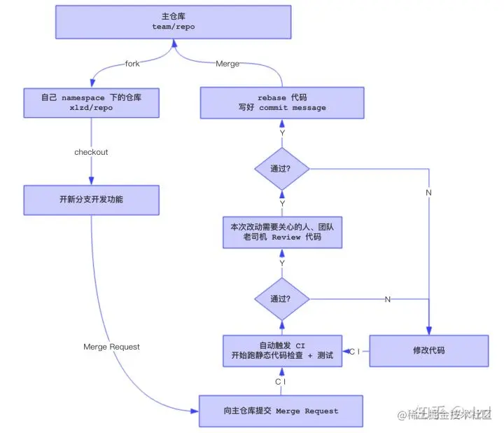 像Github Flow这样基于分支开发的流程是特别适合搭配Code Review的。其实不管什么样的开发流程,关键点在于代码合并到master(主干)之前,要先做Code Review。