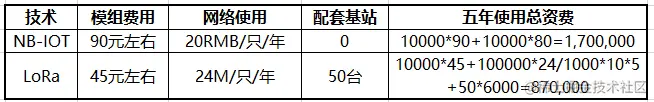 LoRa与NB-IOT资费对比