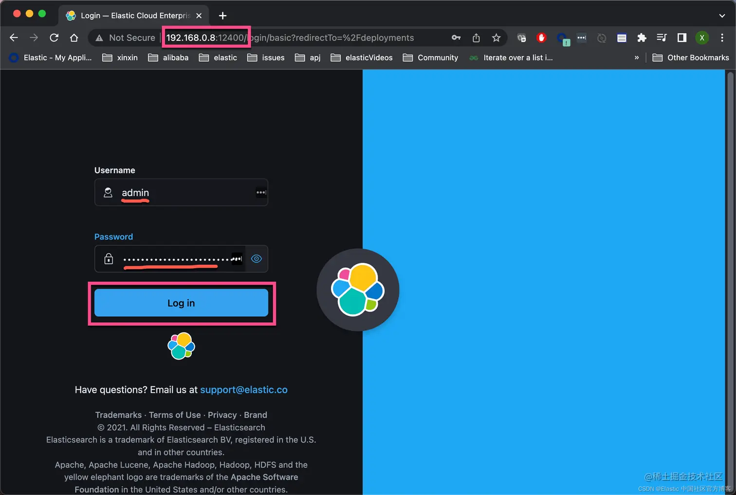 2. elasticsearch: https://bb58db16984843379a12a8373f8c7538.192.168.0.8.ip.es.io:9243...