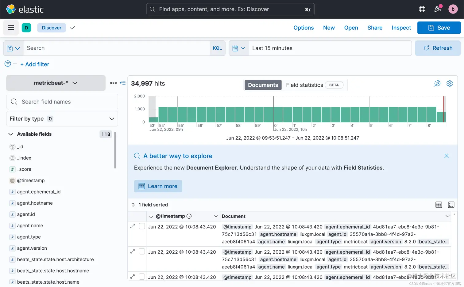 我们接下来直接启动 Metricbeat 就可以了: