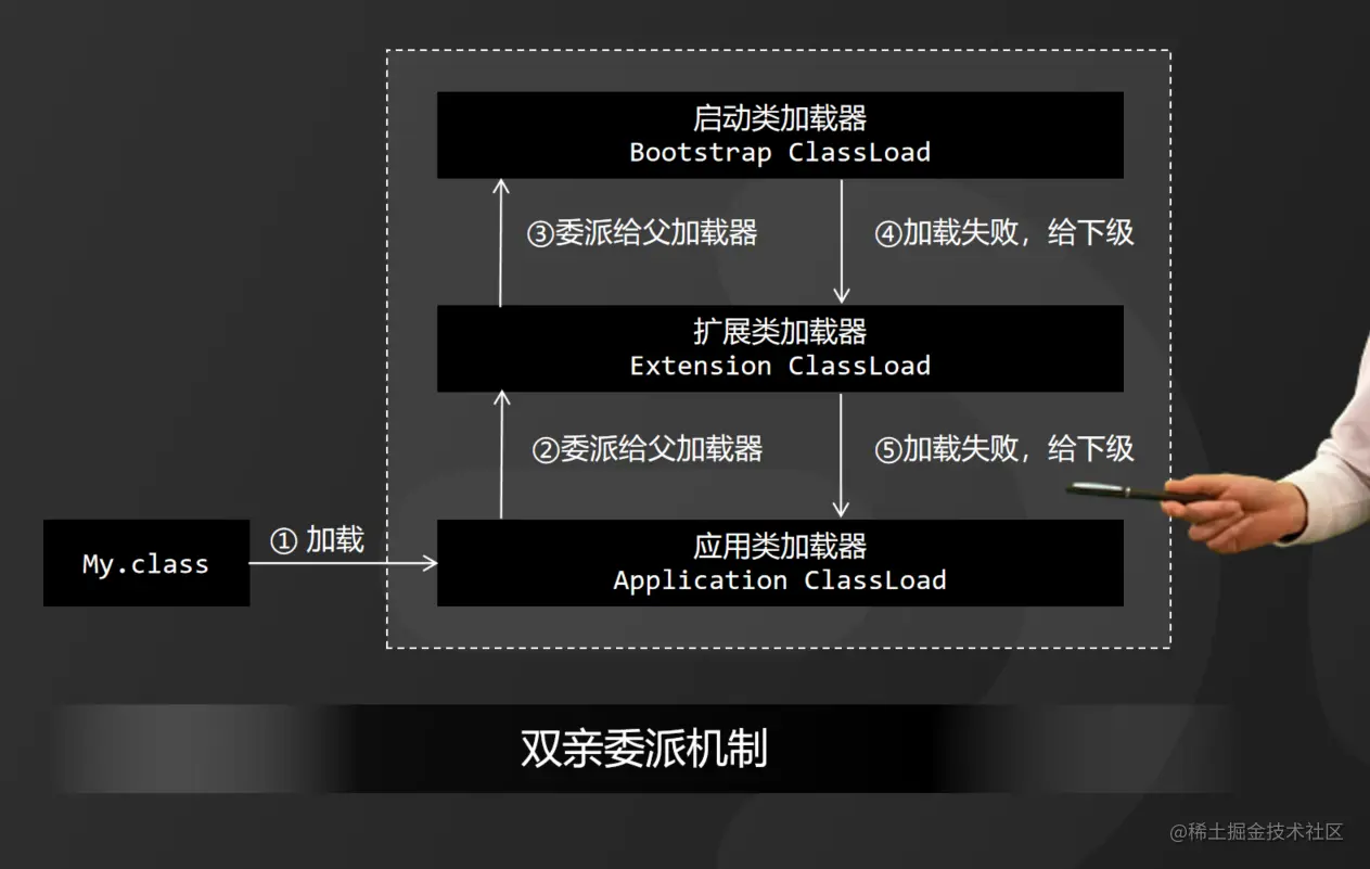 比如,我们需要加载一个class文件的时候,首先会把这个class的查询和加载委派给父加载器去执行,如果父加载器都无法加载,再尝试自己来加载这个class。