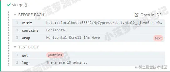 cy.get() 或 cy.wait() 命令中使用@前缀引用的别名的名称,如 @firstNav 、 @putUser