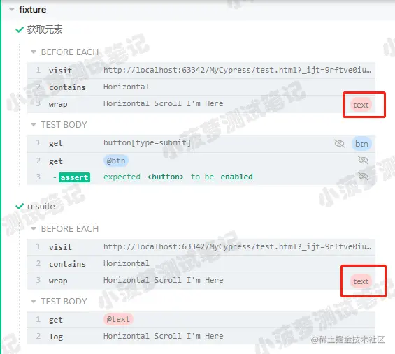 - 是因为 Cypress 的命令是异步的